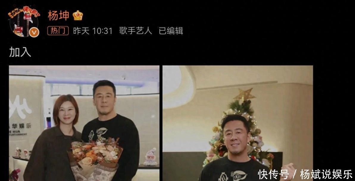 11月22日,杨坤通过社交媒体平台发布“加入”二字。下方还配着一张与乐华娱乐负责人杜华女士的合照,一张自己的照片。